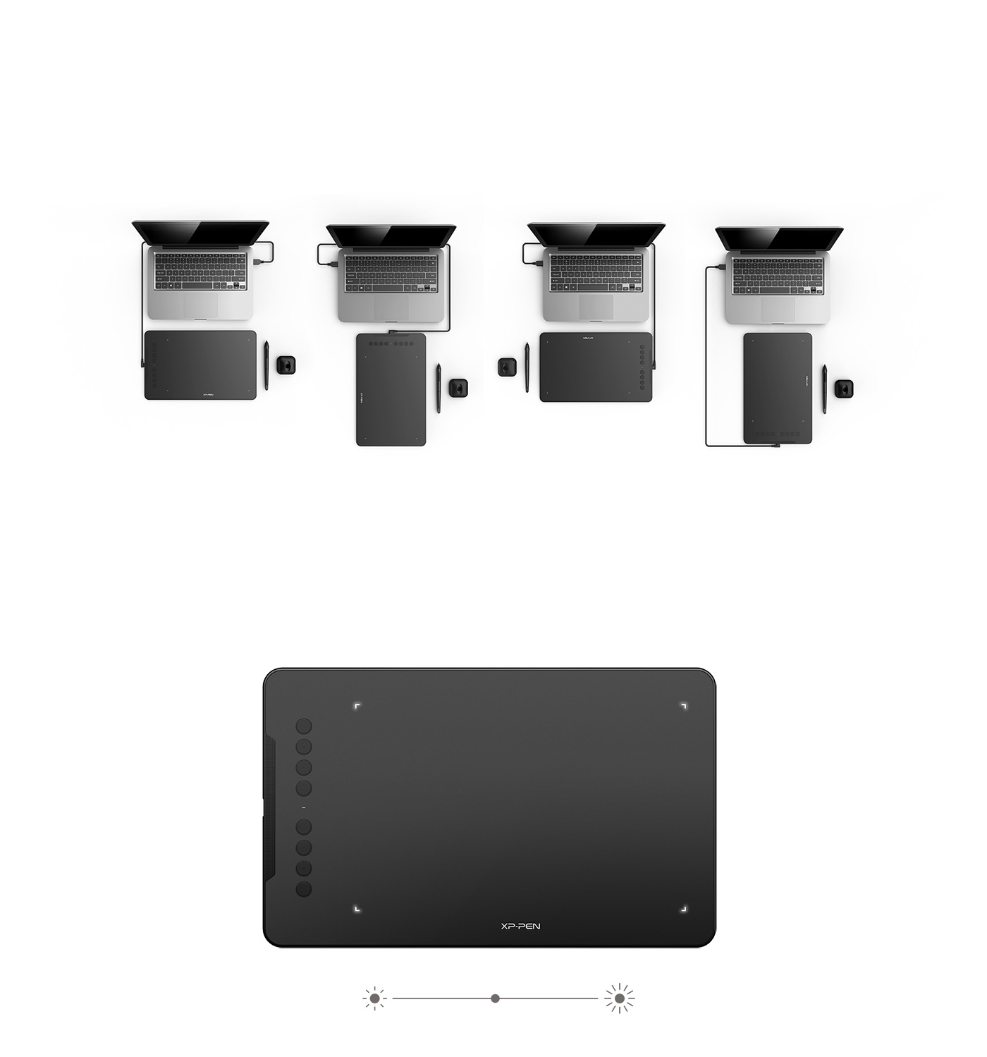 Deco 01 V2 se rozsvítí na koncích kreslicí plochy a má nastavitelnou úrovní jasu, takže můžete pracovat a vytvářet ve svém preferovaném prostředí ať je jakkoliv světlo, či tma.